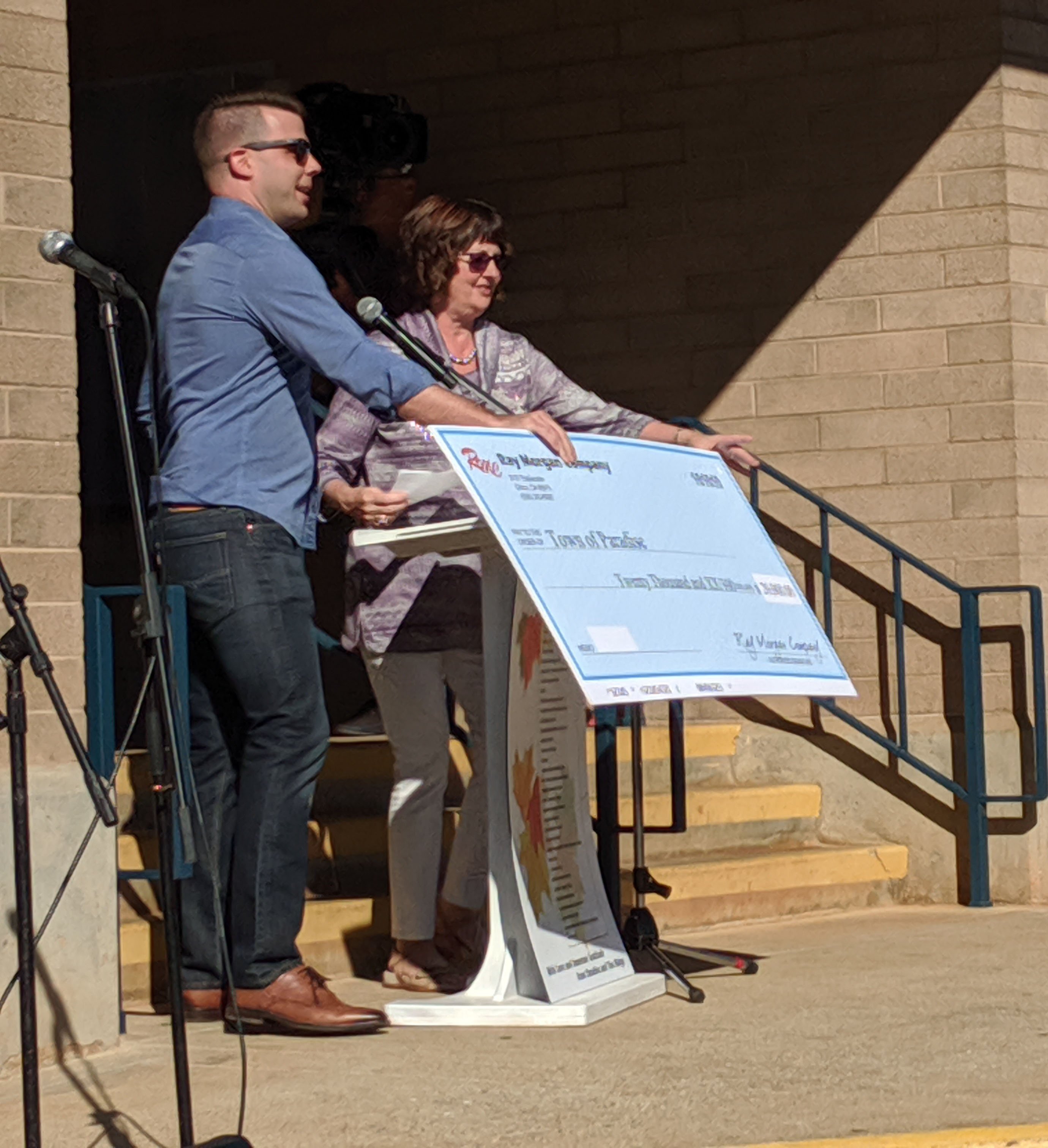 RMC Representative Billy Hansen with the check for $20,000 for Paradise